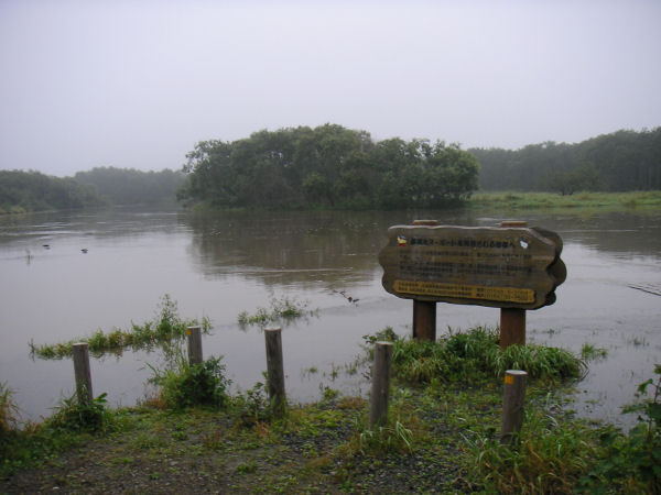 おまけで、以前訪れたときの細岡展望台です。よくパンフレット等で見る、緑一面の湿原の中に川が蛇行している景色が見れるのは、一年でもごく限られた期間らしいです。 |